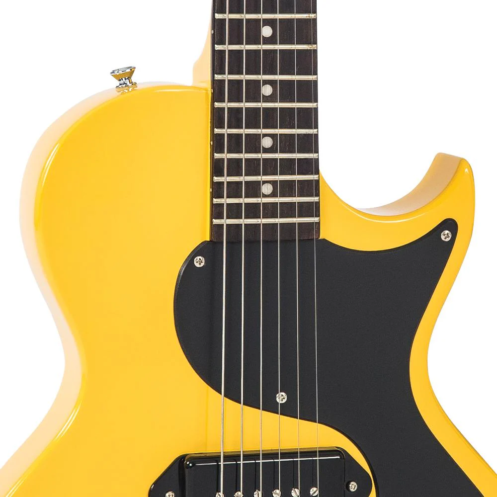 Mahogany body provides resonance, tone and ‘correct weight’ comfort. The Vintage V120TVY features a unique, evolutionary body shape, with a graceful descending bass side shoulder and an ingeniously-designed offset heel providing improved access to the upper reaches of the fretboard.